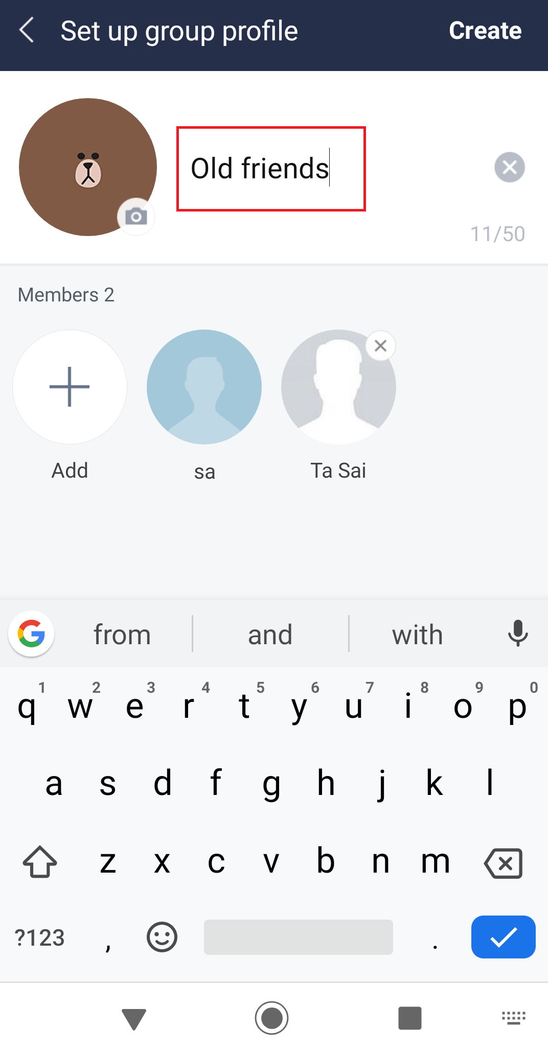 Create a group STEP1 : Tap + button top right of the menu Friends. STEP2 : Tap Create a Group. STEP3 : Choose a friend, tap Next button. STEP4 : Enter the group name. STEP5 : Tap Create button.