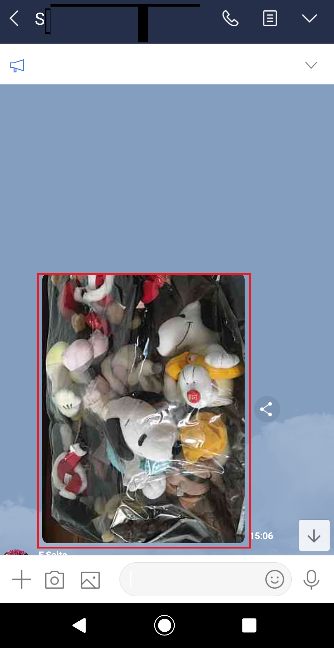 Save picture/video STEP1 : Tap the photo/video you want to save on the talk screen. STEP2 : Tap the down arrow at the bottom right of the screen. Then the download will start.